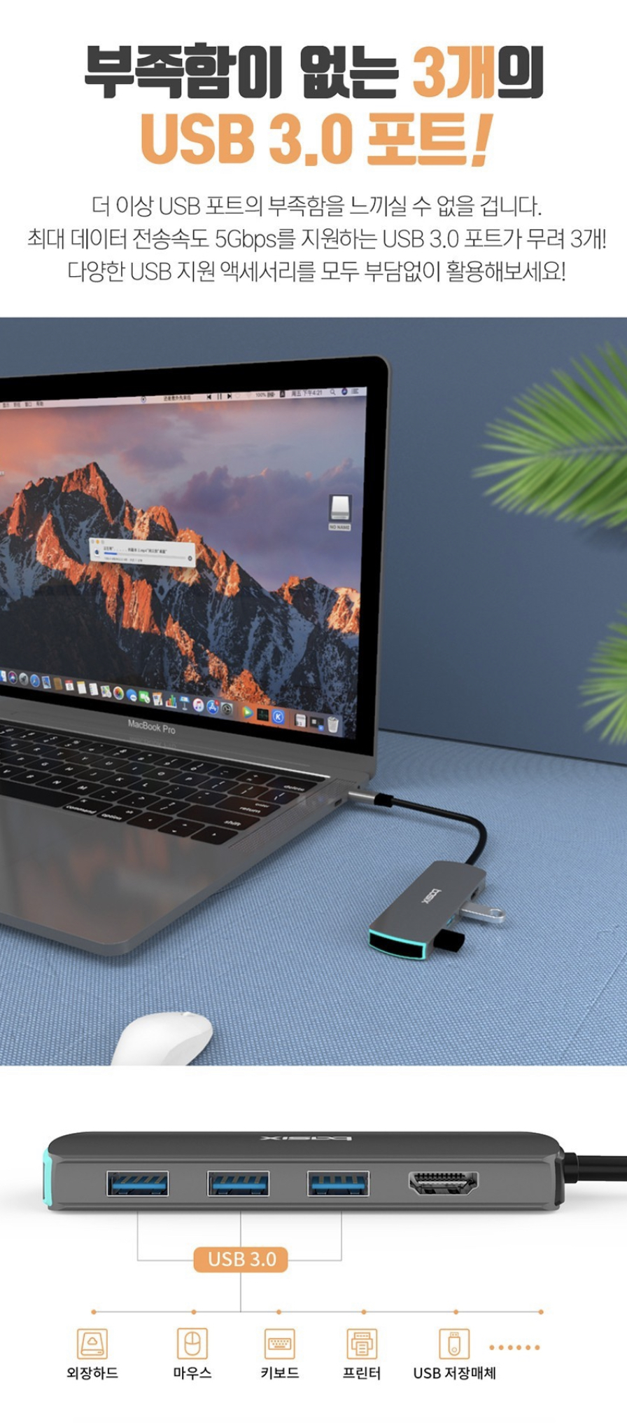 허브와 맥북 또는 아이패드를 보호 하기 위한 전용 파우치가 없다는 것이 조금 아쉽습니다.