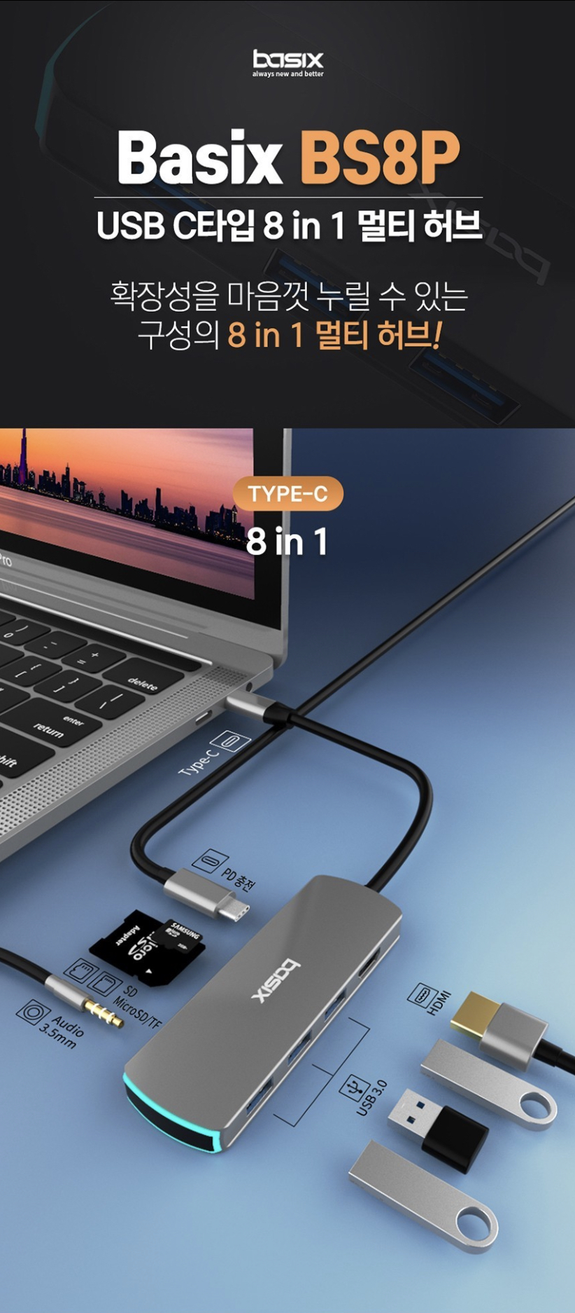 성능적으로 단점보다는 장점이 훨씬 많은 베이식스(BASIX) 맥북 C타입 허브 고민없이 구매하셔도 좋으실거 같습니다.
